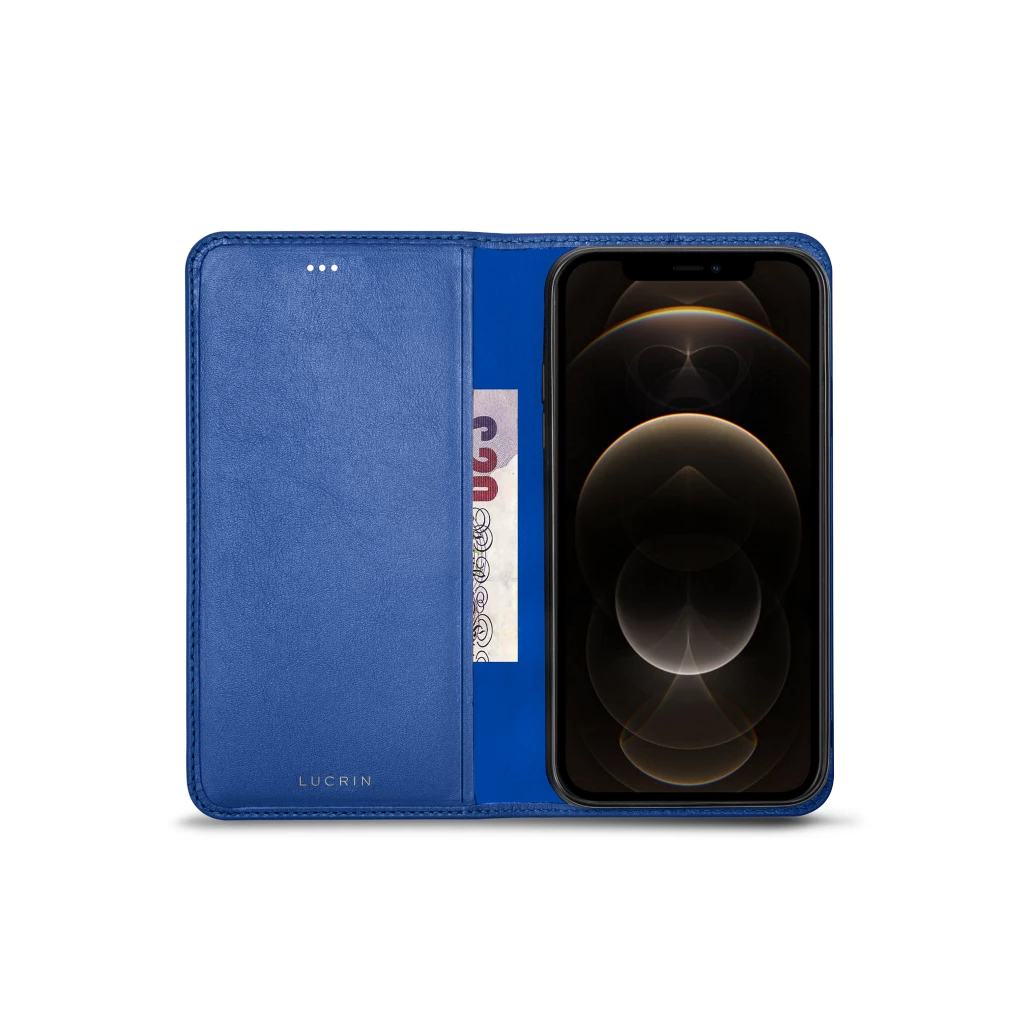 Custom Wallet Case for iPhone 12 Pro Bleu Roi  - Cuir Lisse