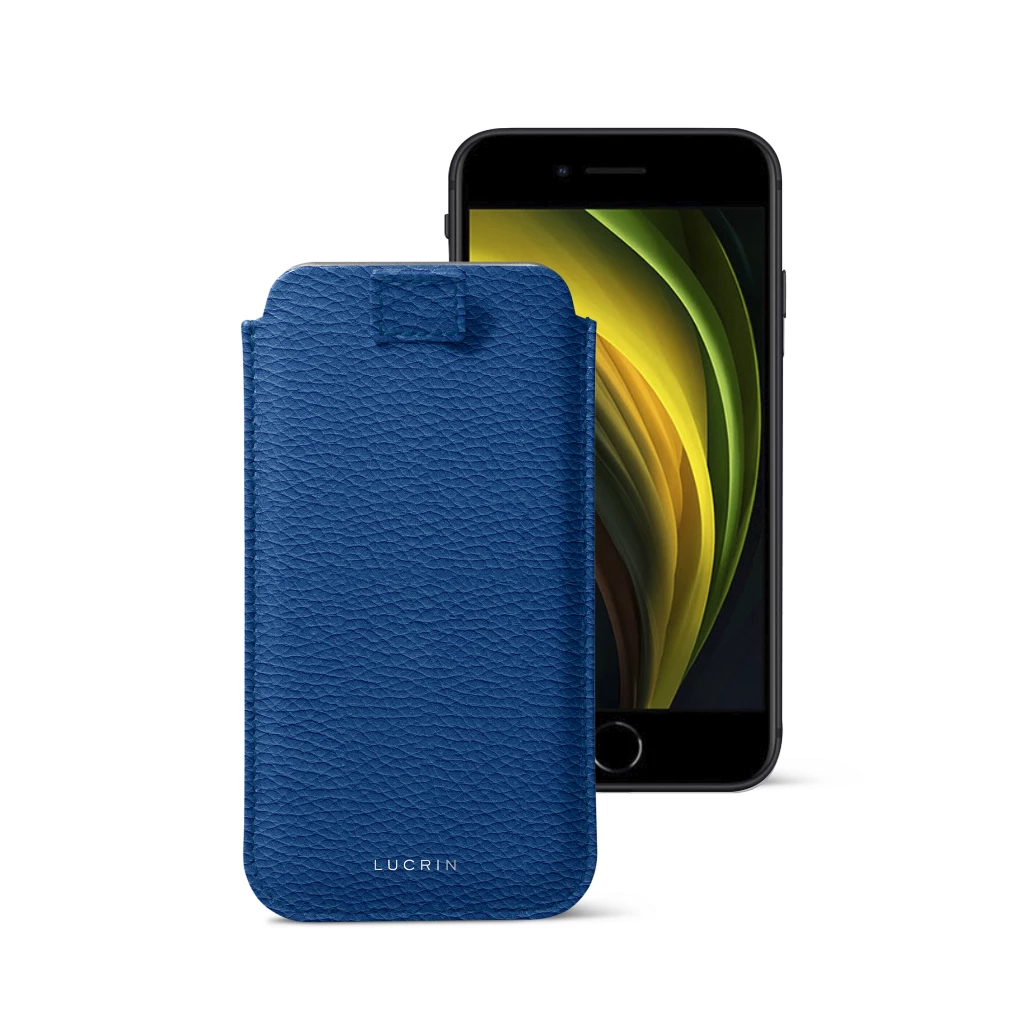 Étui tirette iPhone SE Bleu Roi  - Cuir Grainé